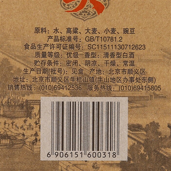 牛栏山二锅头 珍品15 清香型 白酒 45度 400ml*6瓶 整箱装