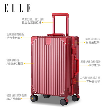 ELLE20英寸红色行李箱法国女士拉杆箱万向轮可登机旅行箱婚礼用品婚箱