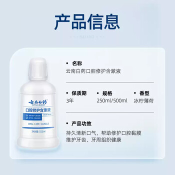 云南白药口腔护理含漱液0酒精不辣口清新口气修护口腔粘膜便携漱口水500ml