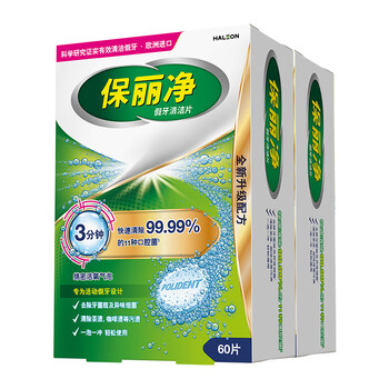 保丽净假牙清洁片60片*2盒全半口泡腾清洗 矫正隐形牙套便携 热卖商品