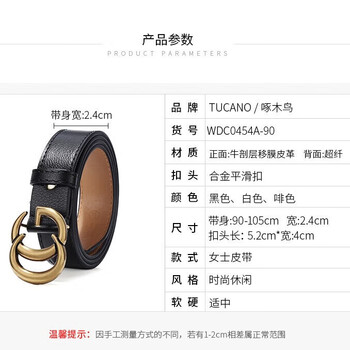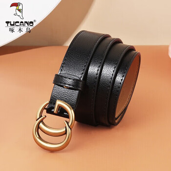 啄木鸟(TUCANO)皮带女款二层牛皮裤带百搭韩版学生复古风合金平滑扣腰带生日礼物