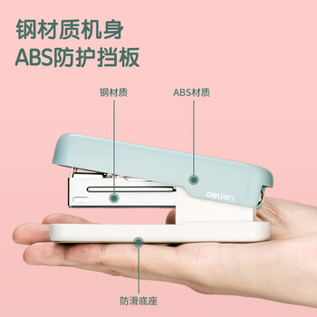 得力(deli)【超级爆款】12号学生办公订书机 马卡龙色 适配24/6或26/6订书钉 浅蓝色 TA301-A