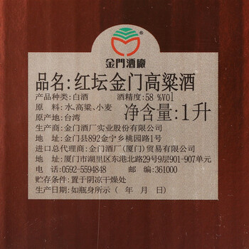 金门高粱 喜宴红坛 清香型白酒 58度1000ml 礼盒装 【宴请送礼】