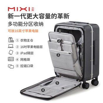 米熙前开盖铝框拉杆箱子行李箱男旅行箱子密码箱万向轮20英寸矿岩灰70