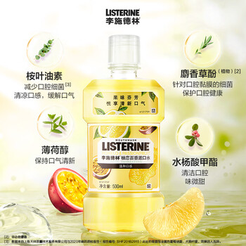 李施德林(Listerine)漱口水 柚恋百香果味清新口气深层清洁女500ml*3