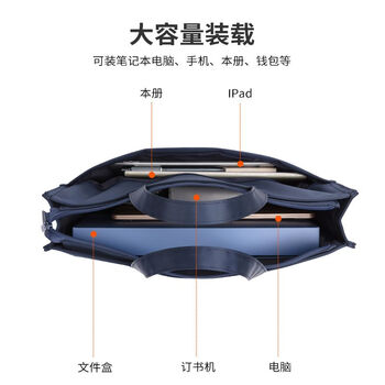 得力(deli)63762 加厚大容量商务拉链电脑公文包 办公手提会议包事务包文件包 缎面材质防水耐磨 蓝色 1个装