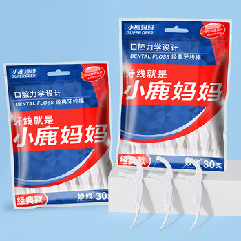 小鹿妈妈经典牙线棒细滑牙线牙签30支/袋*10袋 共300支 随身盒 方便携带