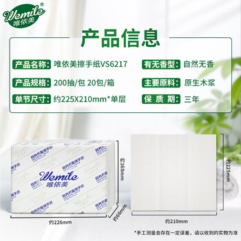 唯依美擦手纸1层200抽*20包商用酒店加厚卫生间干手纸巾整箱 VS6217