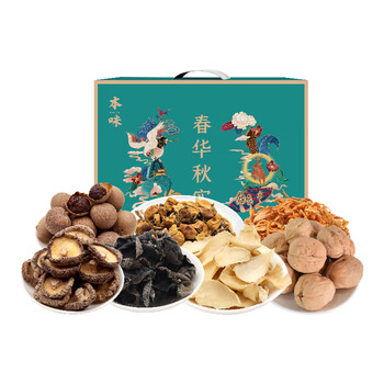 香菇80g、黑木耳80g、蛹虫草80g、滑子蘑100g、桂圆干500g、纸皮核桃250g、百合干150g