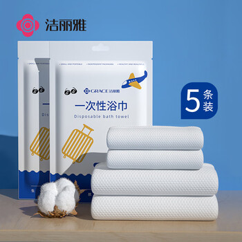洁丽雅旅行一次性浴巾加大洁面洗脸旅游出差酒店宾馆无纺布套装 5条装