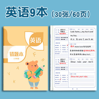 法拉蒙(faramon)9本装错题本小学生纠错改错整理本数学语文英语通用加厚课本配套订正错题作业本 英语9本装