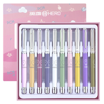 英雄(HERO) 钢笔 学生卡通文具三年级正姿练字日常书写套装 女款 10支装(颜色随机)