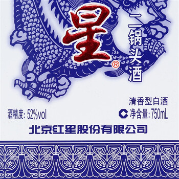 红星二锅头 青花珍品青花瓷 清香型白酒 52度 750ml*6瓶 整箱装口粮酒