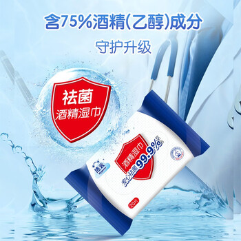 洁云75%酒精湿巾20片*5包 开学便携卫生祛菌 大尺寸湿纸巾校园学生