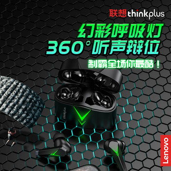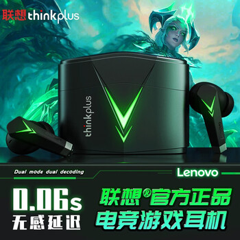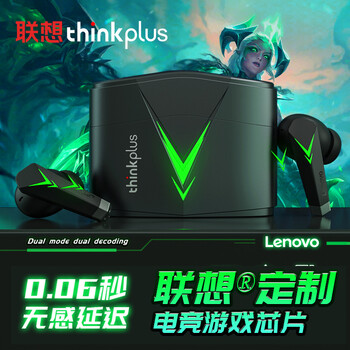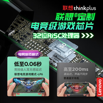 联想(Lenovo) LP6真无线蓝牙耳机黑鲨手机游戏低延迟电竞王者吃鸡跑步运动降噪适用华为苹果小米【黑绿色】