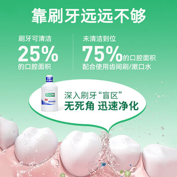 GUM进口漱口水 口腔护理 0酒精 保持牙齿健康口气清新漱口液 清新薄荷日用款500ml*1
