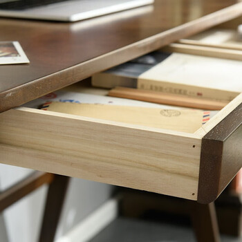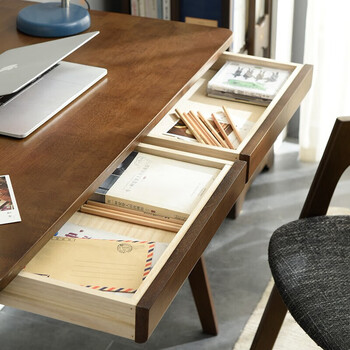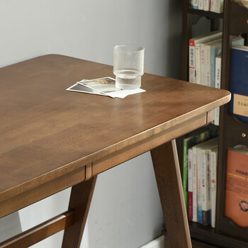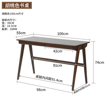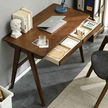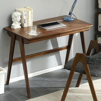 爱必居实木书桌简约家用学生电脑桌日式书房书桌橡胶木办公桌1米胡桃色