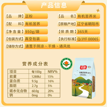 正盼 有机苦荞米1.9斤/袋 苦荞麦 五谷杂粮 粗粮 真空包装
