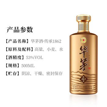 茅台华茅酒 传承1862 酱香型白酒 53度 500ml*6 整箱装 送礼礼品酒