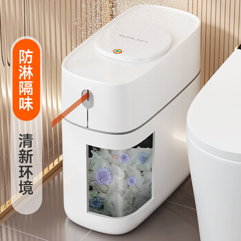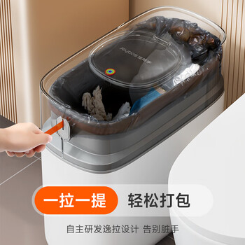 佳帮手卫生间12.9L抽绳打包垃圾桶家用按压式大号带盖客厅厕所卧室夹缝