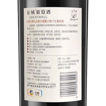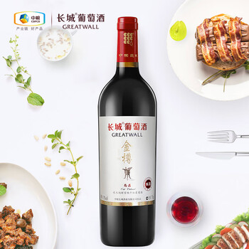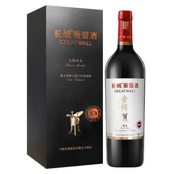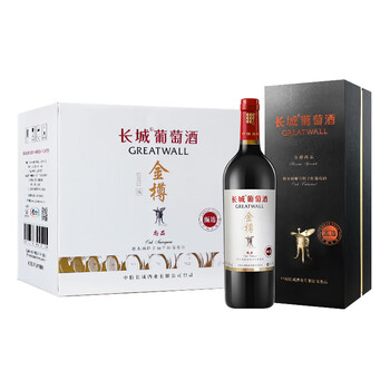长城(GreatWall)红酒 金樽系列 尚品甄选橡木桶解百纳干红葡萄酒 礼盒整箱装 750ml*6瓶(含礼品袋)*1箱