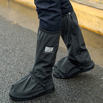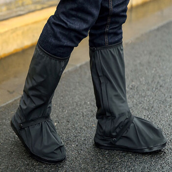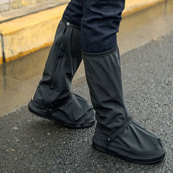 博沃尼克 高筒防水鞋套徒步防滑防沙户外男女雨天骑行防雨鞋套靴套黑色 XL