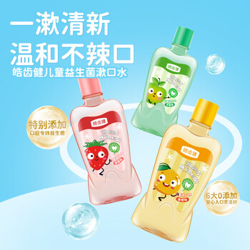 皓齿健3-12岁儿童漱口水250ml(草莓味)无氟0酒精 益生菌 护龈清新口气