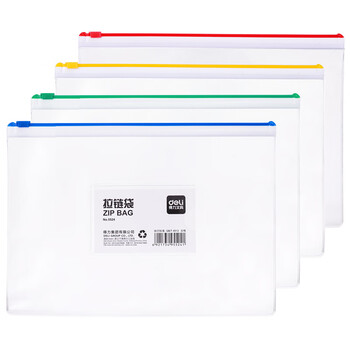 得力(deli)5524 A5透明防水拉链袋 文件袋资料档案袋 财务凭证收纳票据收纳袋 颜色随机 12只装