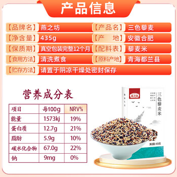 燕之坊 三色藜麦 435g( 稀有五谷杂粮 大米伴侣 粥米搭档 真空装)