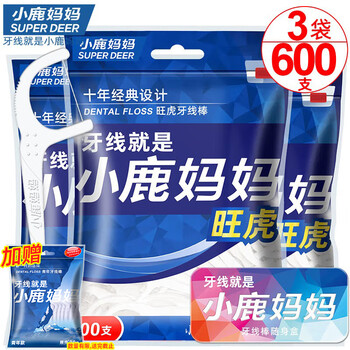 小鹿妈妈 洁齿护理小鹿君牙线棒200支/包*3袋,送随身盒
