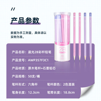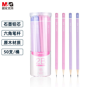 晨光(M&G)文具2B彩杆六角木杆铅笔 素描绘图学生书写铅笔 50支/筒 紫粉色 AWP357F3C1