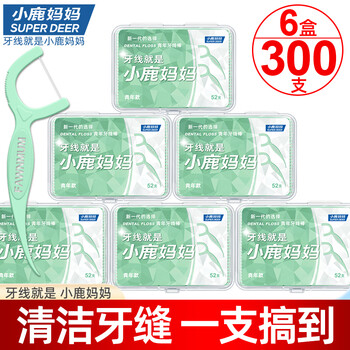 小鹿妈妈经典护理牙线棒300支清洁齿缝家庭装超细牙线棒