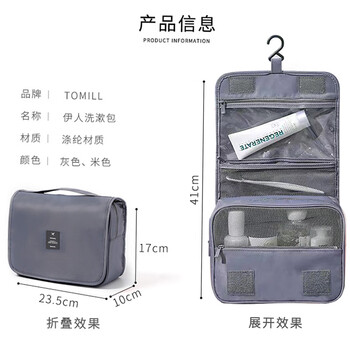 ToMill洗漱包男女便携出差洗漱袋户外用品化妆包旅行洗漱用品收纳包 灰色
