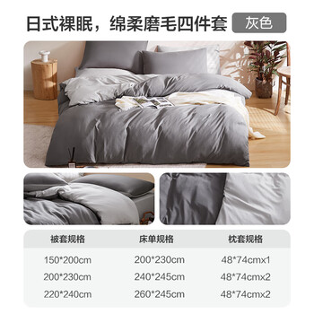 网易严选日式裸眠亲肤磨毛宿舍四件套酷灰色床单被套1.5m床/2mx2.3m被芯
