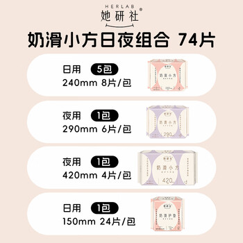 她研社奶滑小方绵柔卫生巾套装 超薄日夜组合74片 超薄姨妈巾京东自营