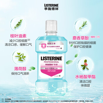 李施德林(Listerine)漱口水 抗牙敏感500ml 温和清新口气深层清洁减少细菌