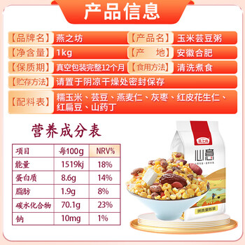 燕之坊玉米芸豆大碴粥2斤腊八粥花生仁红扁豆燕麦灰枣山药粥