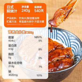 云山半日式照烧酱汁240g 照烧鸡腿猪扒鳗鱼饭盖饭汁日式料理调味酱