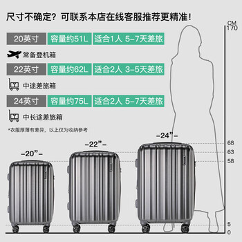 莎米特大容量行李箱女22英寸拉杆箱男万向轮旅行箱可扩容PC154T4A深灰