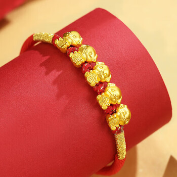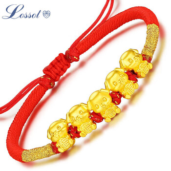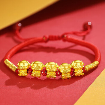 Lossot生日礼物本命年十二生肖狗足金五福狗黄金转运珠手链5D硬金狗