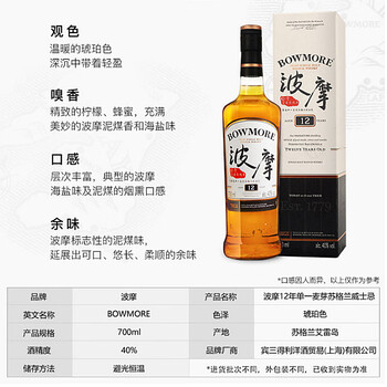 波摩(Bowmore)12年单一麦芽700ml 礼盒 苏格兰 艾雷岛 威士忌 洋酒