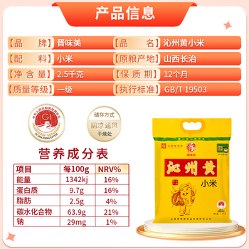 晋味美正宗沁州黄小米5斤 山西小米 小米杂粮 黄小米 小米黄小米