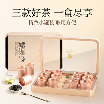 峨眉雪芽 小罐装茶金罐 绿茶花茶红茶茗茶礼盒6g*12罐