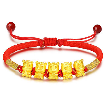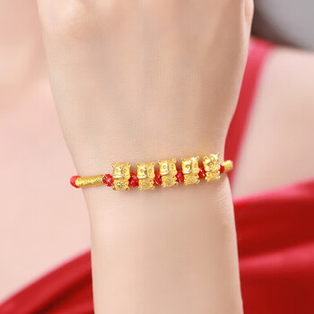 Lossot生日礼物本命年十二生肖马足金五福马黄金转运珠手链5D硬金马
