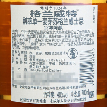 格兰威特(Glenlivet)洋酒 醇萃12年单一麦芽苏格兰威士忌 700ml*1