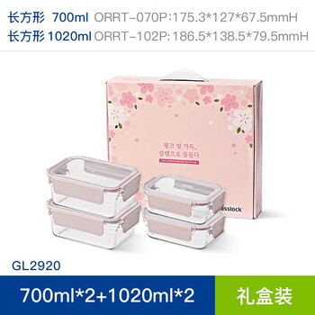 Glasslock进口钢化保鲜盒 樱花礼盒4件套 GL2920(ORRT-070P粉色*2/ORRT-102P粉色*2)