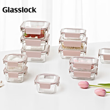 Glasslock钢化玻璃保鲜耐热适用上班族学生饭盒密封储物保鲜便当盒 礼盒装