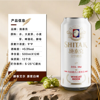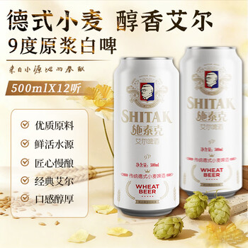 天湖啤酒施泰克9度精酿小麦原浆浑浊型 500ml*12听京东自营年货整箱装