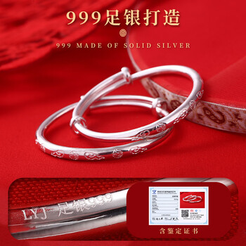 老银匠s999足银手镯宝宝银镯子婴儿小孩福瑞祥云儿童银手镯满月周岁礼物