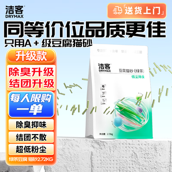 洁客(Drymax)豆腐砂植物环保结团高效除臭低尘猫砂绿茶味2.72kg